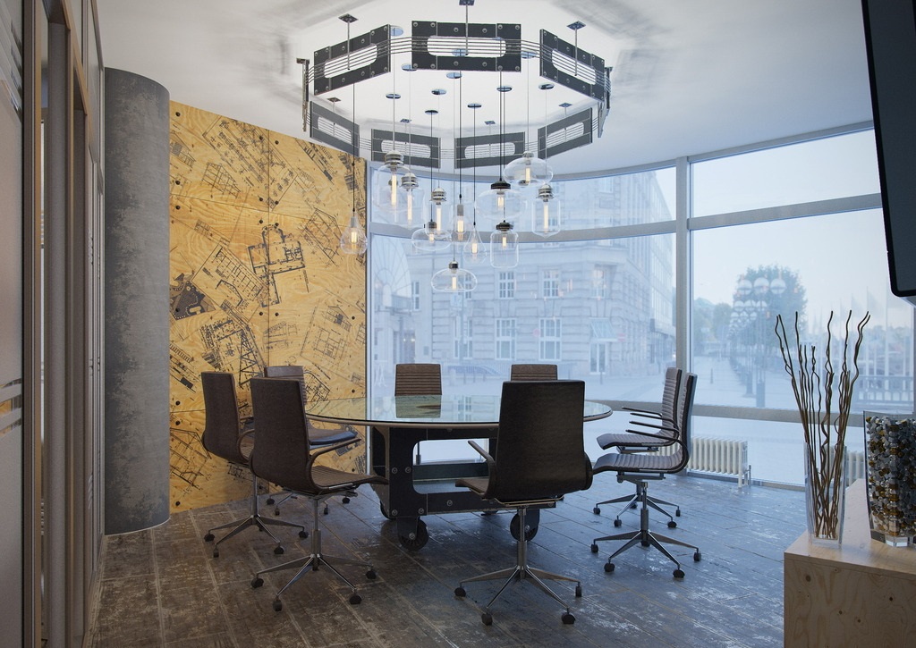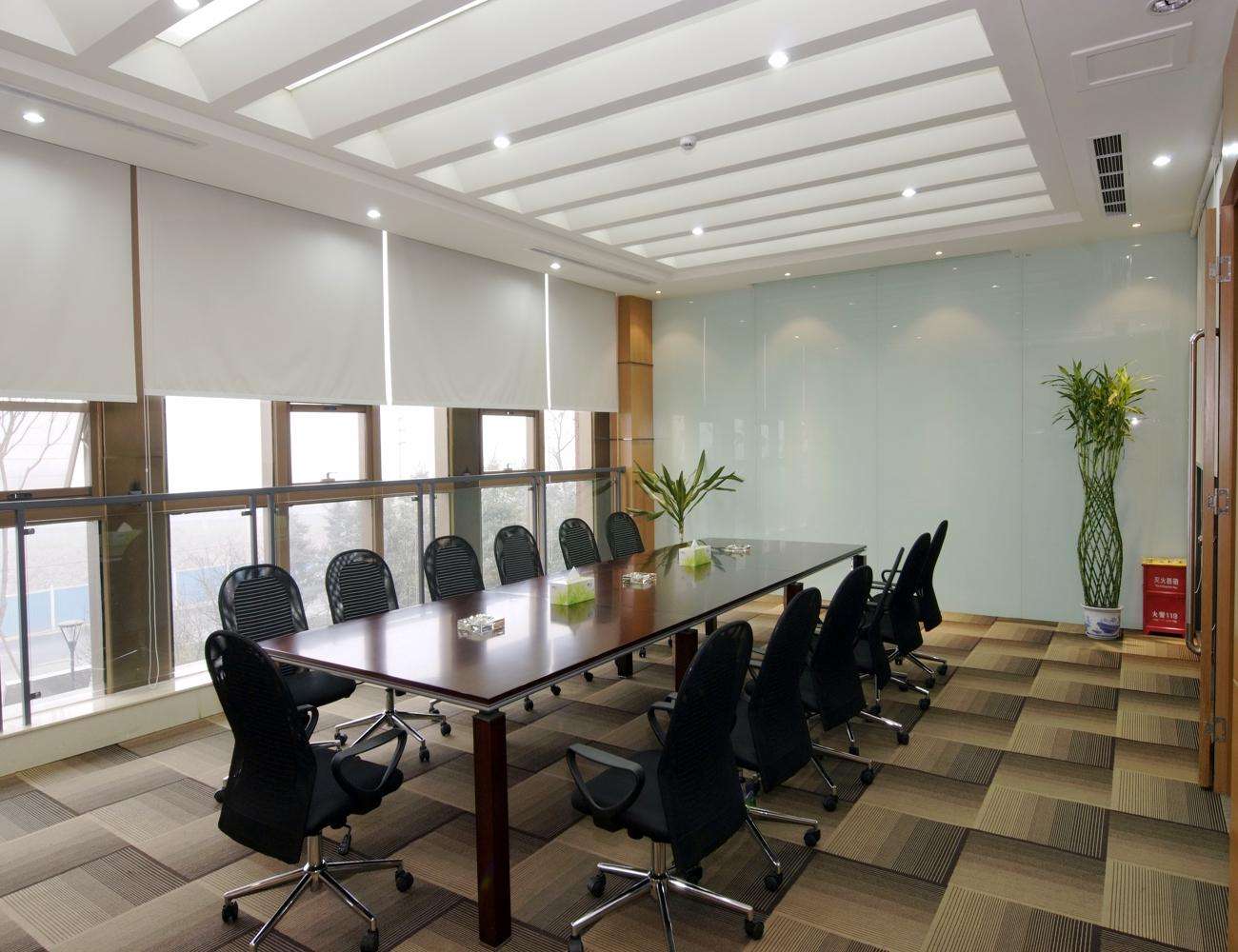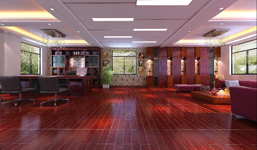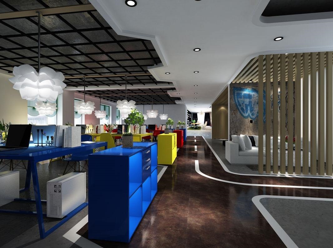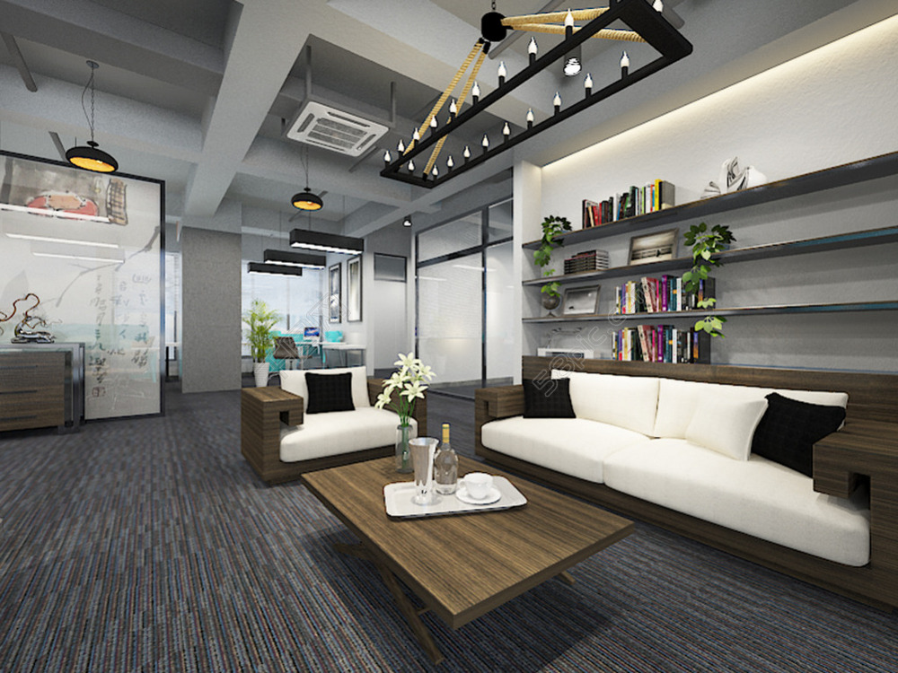 本案設計首先闖入眼簾的是企業形象墻,以其企業文化的新興、蓬勃、嚴謹為主題,兩側以“居有竹、步步高”的銀色墻柱帶來視覺沖擊感,加上企業形象色的類比色、淺色石材及不銹鋼條的運用,顯示出金屬的質感和工業文明的主題;華堂上方呼應以直線為主調、大筆勾勒而出的時尚型弧面吊頂,大直大方顯示出強烈的縱深感,加之以清透、明媚的光色渲染,工整氣派、大家風范,反襯出貴公司辦公樓的現代時尚特性,以干練快捷的設計節奏,展示出質量與效率并舉的時代精神。