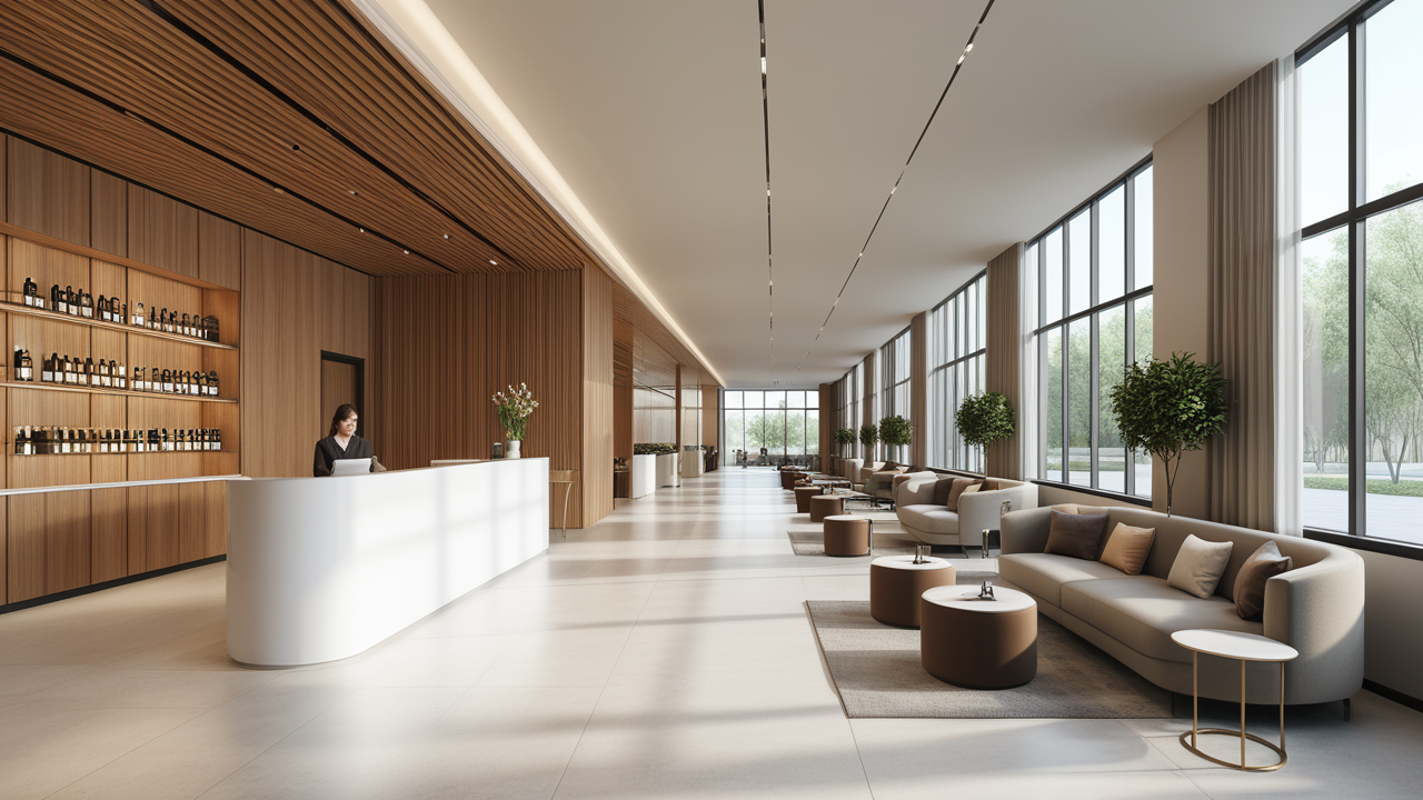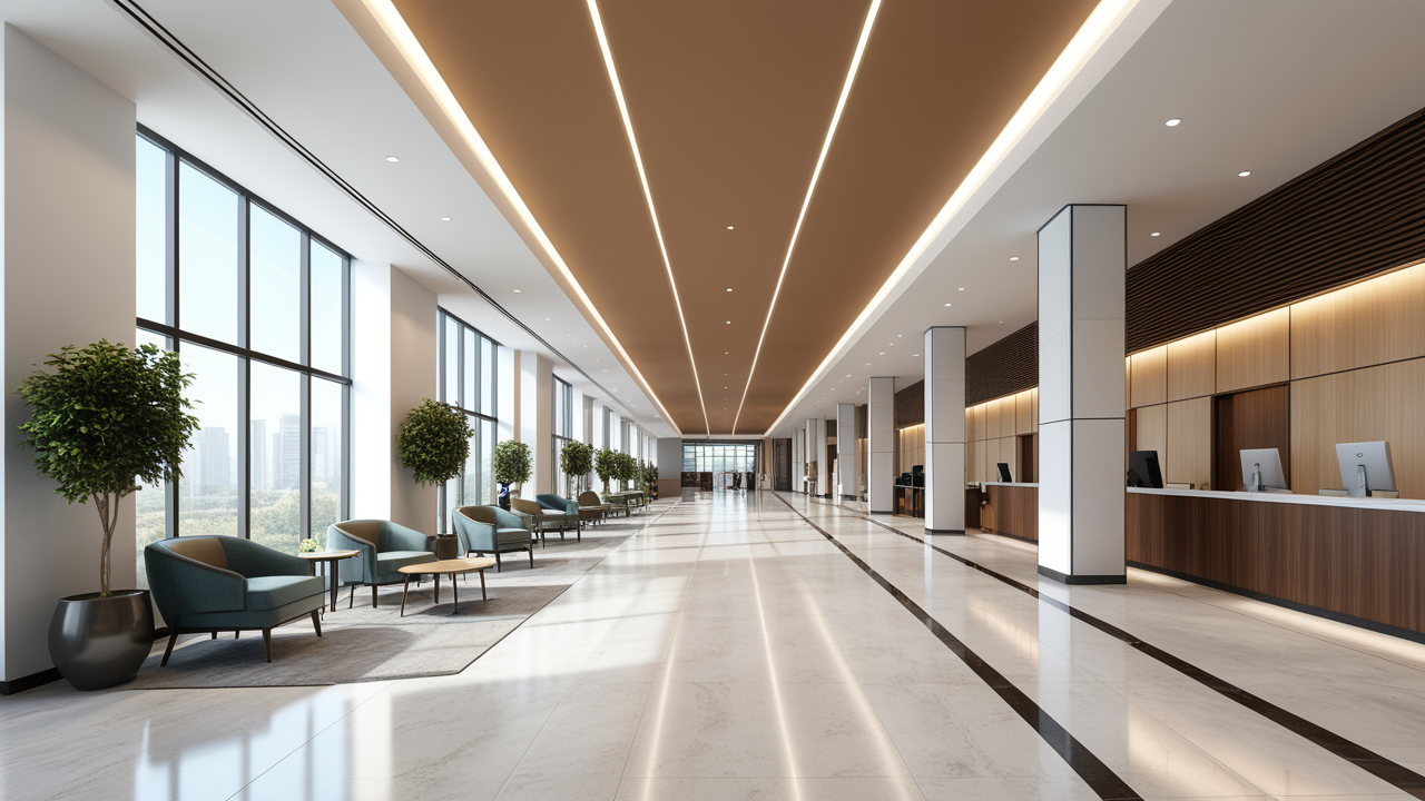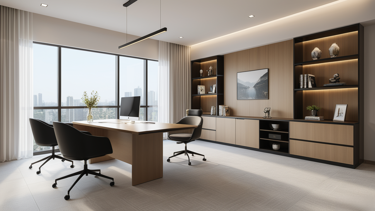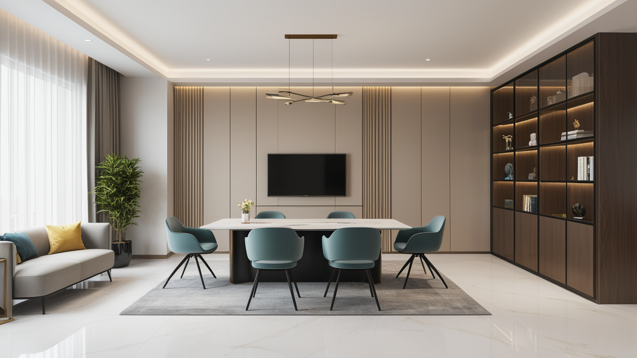 本案設計在處理上,特設計了可向客戶展示企業(yè)榮譽品的展示墻,用料實際,無須雕琢張揚,直線條的造型讓整個空間顯得穩(wěn)重大方,淺色系材料的運用延續(xù)了靈動而清澈的氣韻,大方莊重卻內含現(xiàn)代時尚。而且色調淡雅的地毯、沙發(fā)、背景,還突出了接待廳親切、和睦、寬松的氛圍,使穩(wěn)靜而坦誠的晤談氣氛盎然一室。