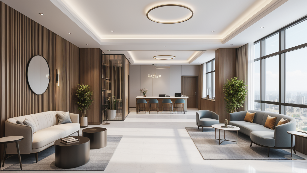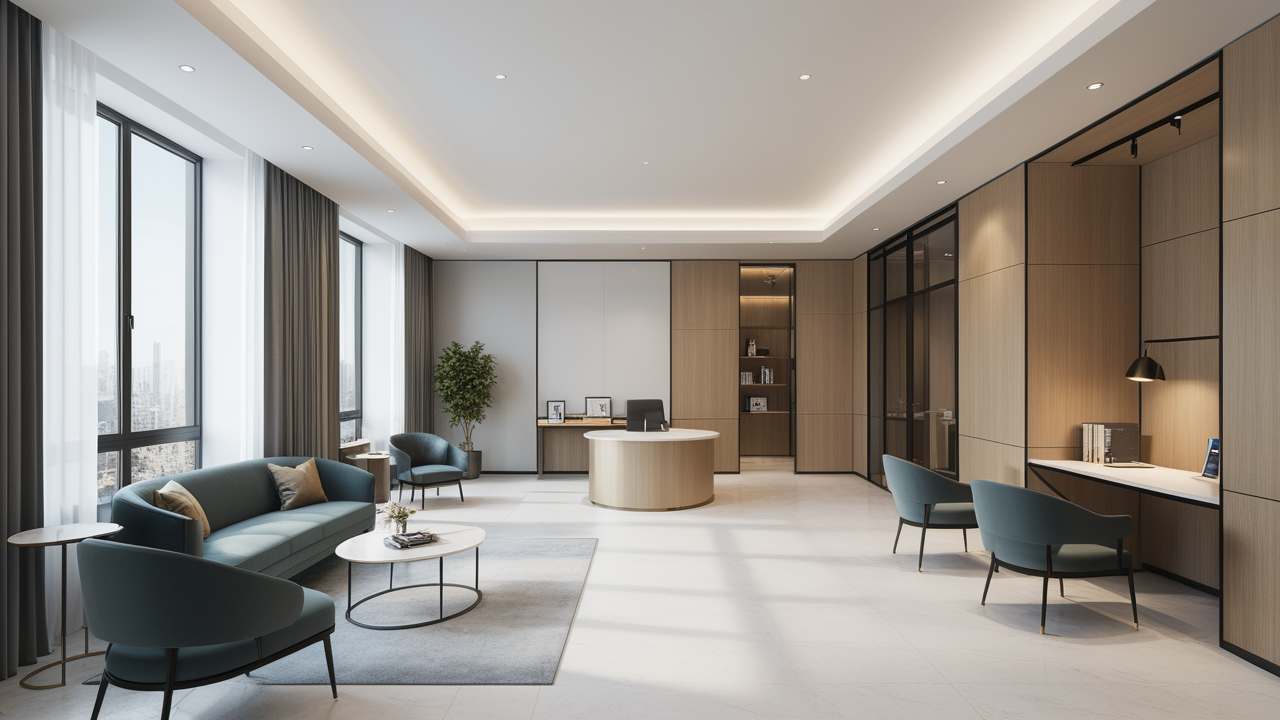 本案設(shè)計(jì)主題 “靈透之材,蓬勃之勢(shì)”為主題,本案就其“鋼之靈透”,用象征化的表現(xiàn)手法,多元化的設(shè)計(jì)元素,力求整體風(fēng)格與整棟大樓協(xié)調(diào)、清新、大氣的外觀設(shè)計(jì)保持一致,企業(yè)氣質(zhì)內(nèi)外渾然一體,展現(xiàn)出富有深刻內(nèi)涵的視覺空間及該企業(yè)獨(dú)特的個(gè)性與特點(diǎn),將復(fù)蘇這一時(shí)代特性滲透于整個(gè)空間,既突顯造企業(yè)特質(zhì),又蘊(yùn)涵公司新興而極具沖擊力的蓬勃發(fā)展之勢(shì)!