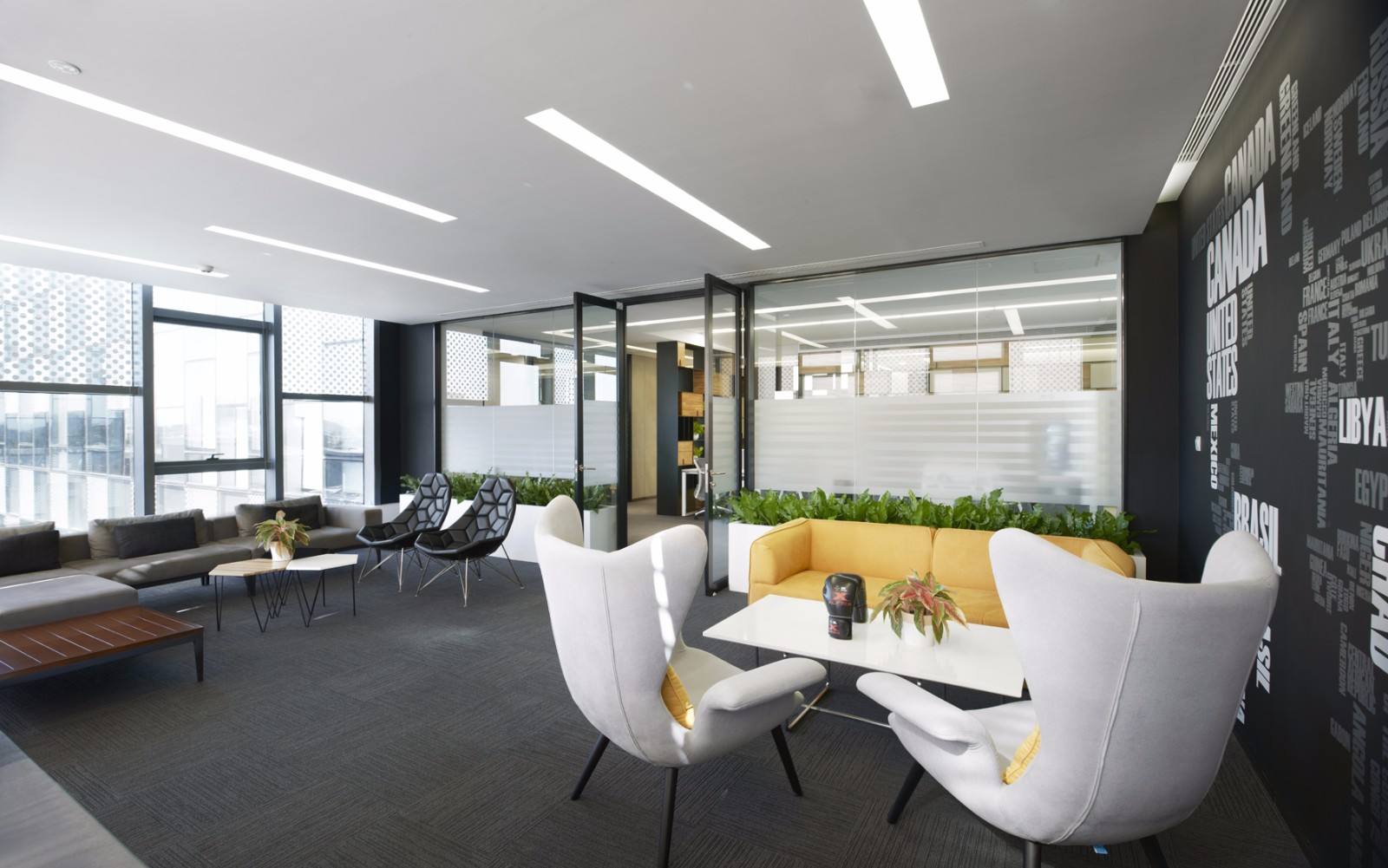 現(xiàn)代感:目前很多辦公室裝修時(shí),為了滿足思想交流的需要,加強(qiáng)民主,往往采用共享空間的理念,使辦公室開放。這種逐漸興起的設(shè)計(jì)已經(jīng)成為現(xiàn)代新辦公的標(biāo)志,而現(xiàn)代辦公新空間的理念也體現(xiàn)在面對(duì)合并。在現(xiàn)代裝飾設(shè)計(jì)中,逐漸注重將自然環(huán)境引入室內(nèi),連接室內(nèi)外環(huán)境,使室內(nèi)外融為一體,給辦公空間帶來生機(jī)和活力。
